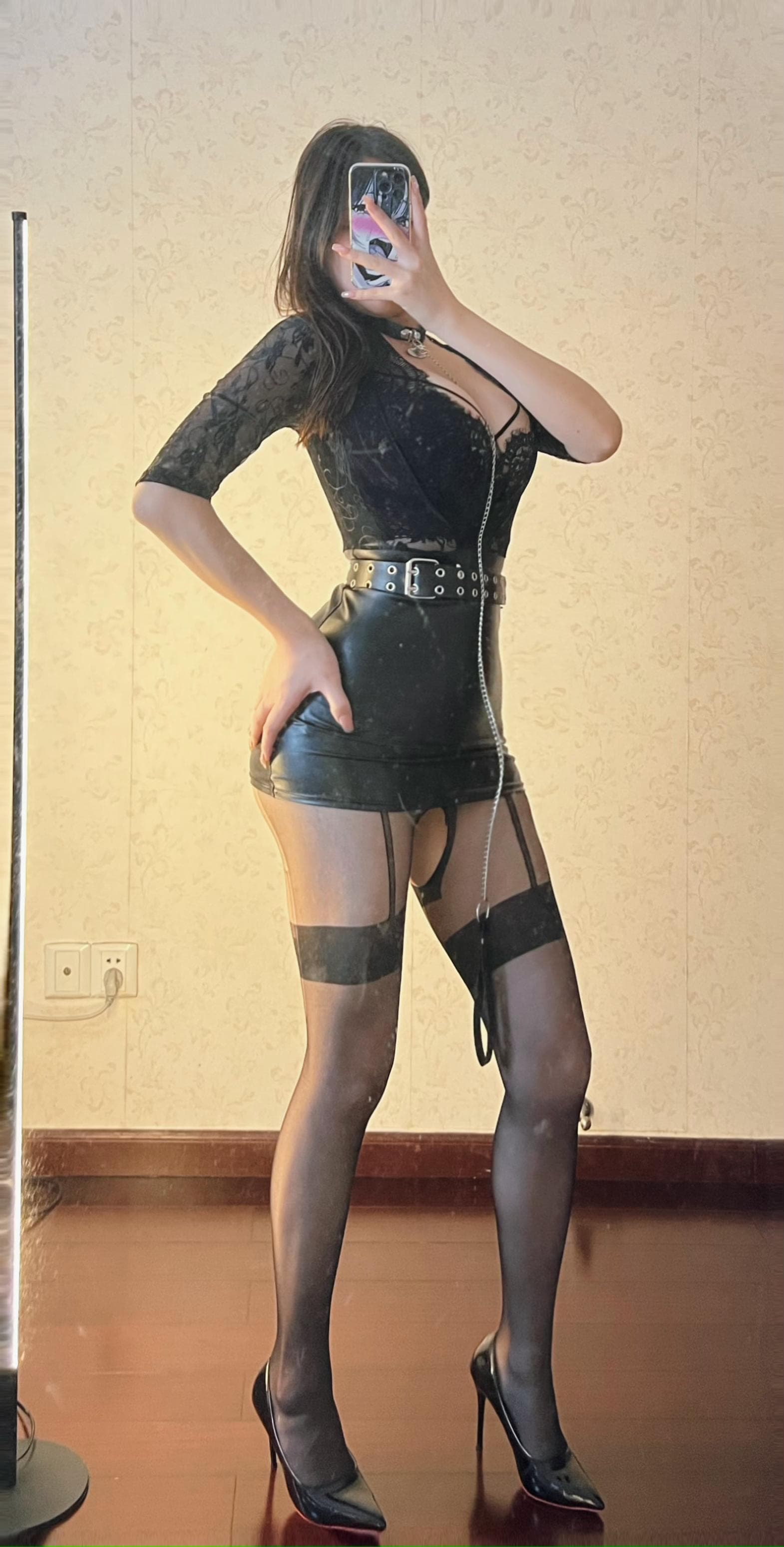 可可西yyy - 黑丝黑皮短裤黑蕾丝