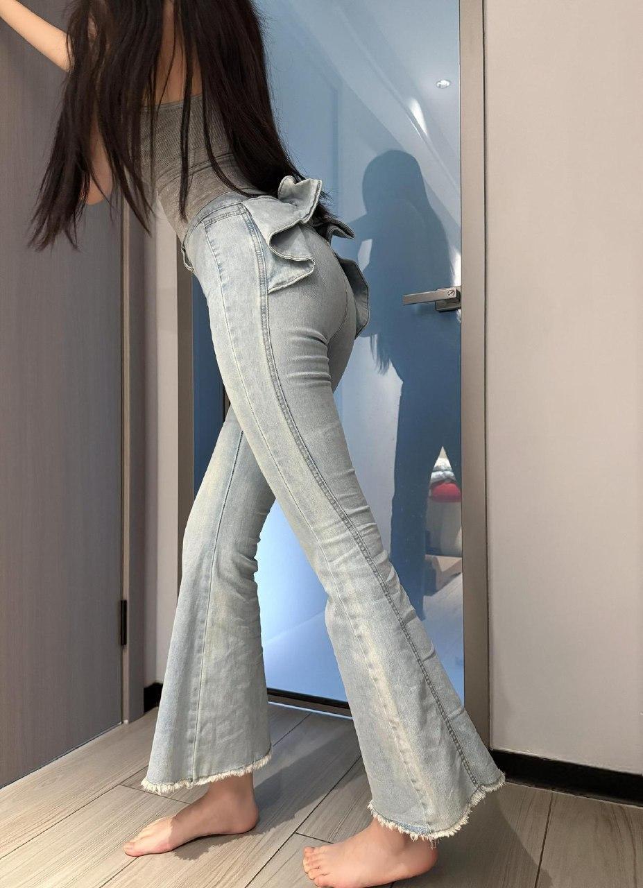 林扣弦 - 缎带修身喇叭裤